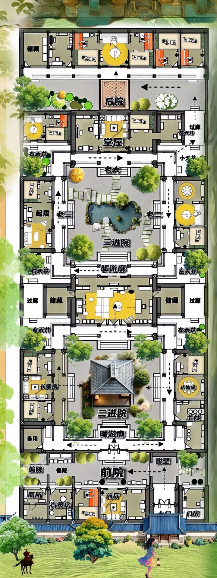 接地气的三进院,最抢眼,三家东说念主很圆善,四代同堂也不挤,厅正板,屋有地儿,除茅厕不够,有水有山有石,啥皆不缺!
