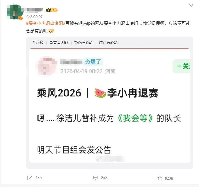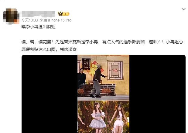 4月19日,有多位网友在嘱托平台发文:“曝李小冉退出浪姐”。
