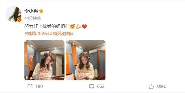 当天地午14:42,李小冉发文:“英勇赶上优秀的姐姐们”,配图是我方的两张职责照,疑似回报联系传说。