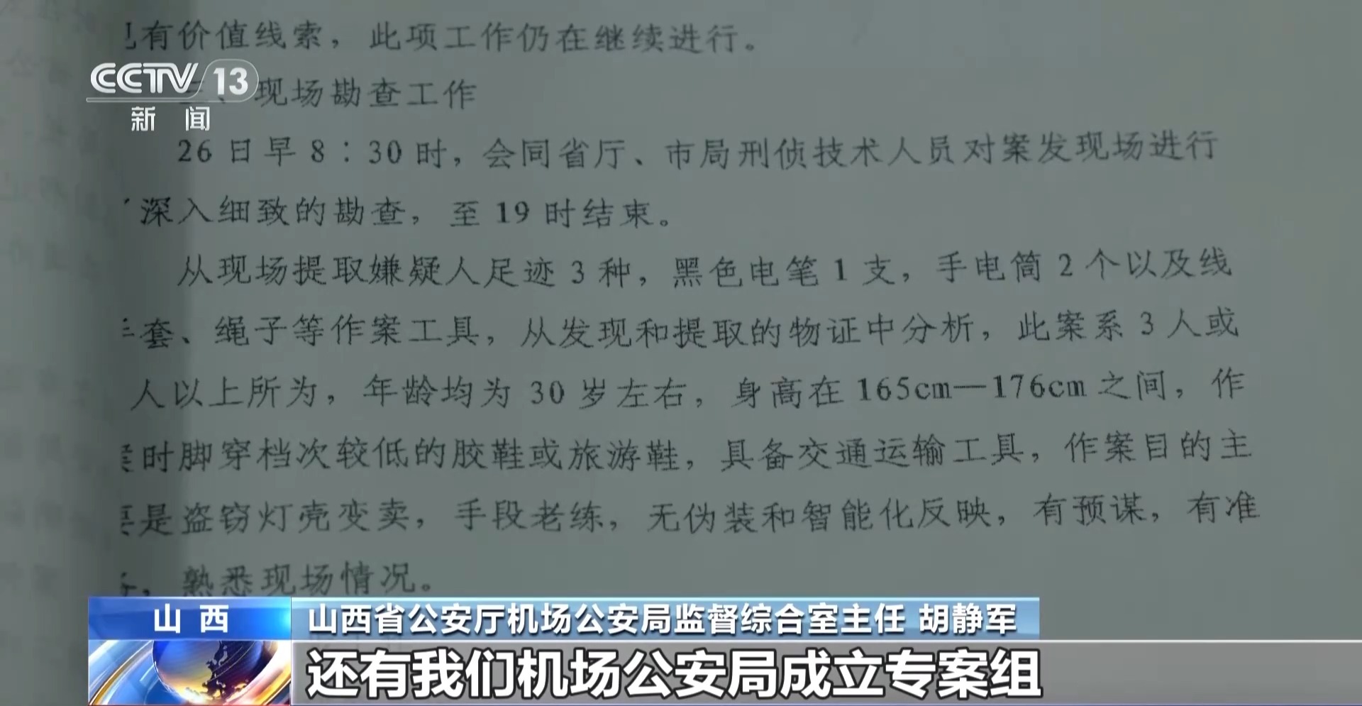 山西省公安厅机场公安局监督详细室主任 胡静军:2003年我是参加使命第三年,当年我还当作别称新警在侦缉队参与办理了这起案件。那时是民航局公安局督办,然后山西省公安厅,包括太原市公安局小店分局,还有我们机场公安局设立专案组,统统来侦办这个案件的。