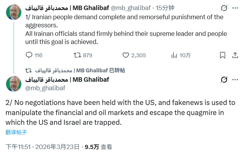动作伊朗方面的恢复,伊朗伊斯兰议会议长卡利巴夫23日在搪塞媒体发文,开云体育否定如故与好意思国举行筹商,称这是用于垄断金融和石油商场的“假音书”。