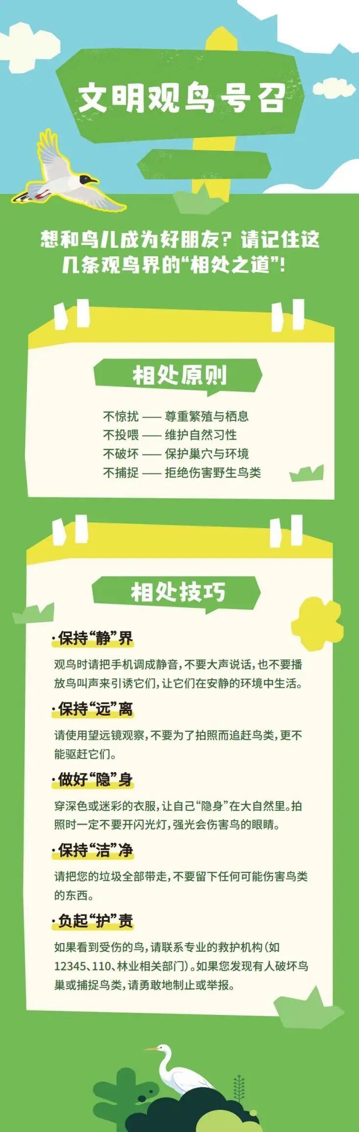 ✅不服缓触碰鸟类,不干涉鸟类繁衍,际遇幼鸟掉落不要私行捡拾,请干系专科东说念主员处理。