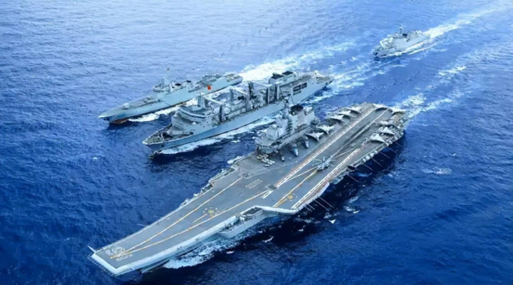 2022年5月,辽宁舰编队在西太平洋实施远海实战化任务,突遭外军两个航母编队从东、南双向夹攻,全程抵近追踪、一样派出舰机寻衅,海空态势蓦地弥留。