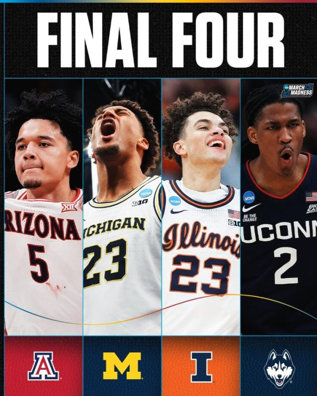 在这场比赛截止之后,荒诞三月的精英八强也落下帷幕。终极四强的对阵情况也随之出炉开云体育app官方最新版,伊利诺伊大学将对阵康涅狄格大学,密歇根大学和亚利桑那大学成为敌手。终极四强赛将于北京时候4月5日打响。