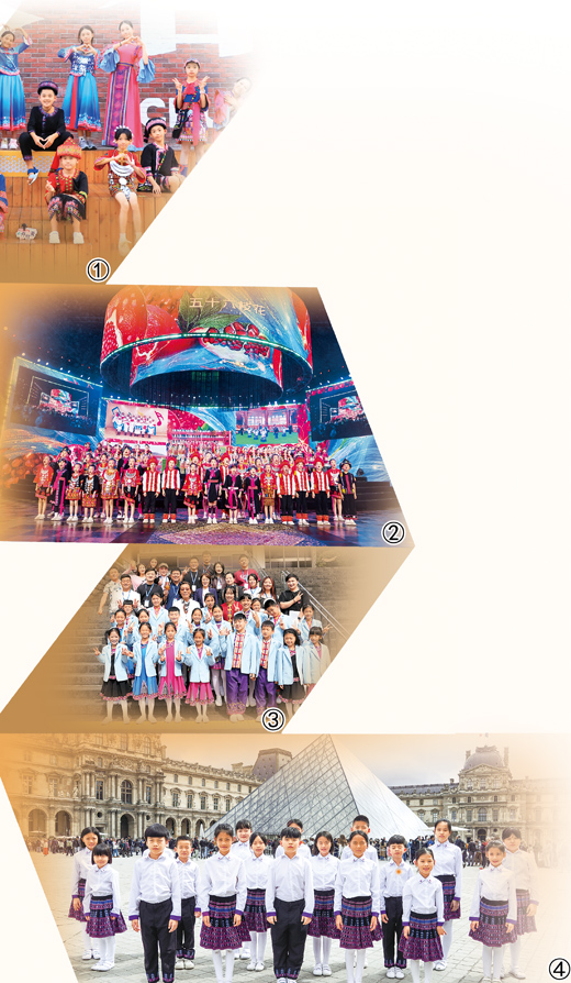 图①:雨林童声齐唱团在吉林省长春市春京西历史文化街区合影。 图②:2025年3月,雨林童声齐唱团应邀进入海南黎族苗族传统节日“三月三”主会场开幕式上演。 图③:雨林童声齐唱团在韩国济州岛合影。 图④:雨林童声齐唱团在法国巴黎卢浮宫前演唱《茉莉花》。 本文相片均由受访者提供