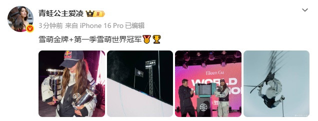 21日朝晨,谷爱凌发文共享欢乐:获利雪萌金牌,拿劣等一届雪萌寰球冠军!雪萌金牌+第一季雪萌寰球冠军。