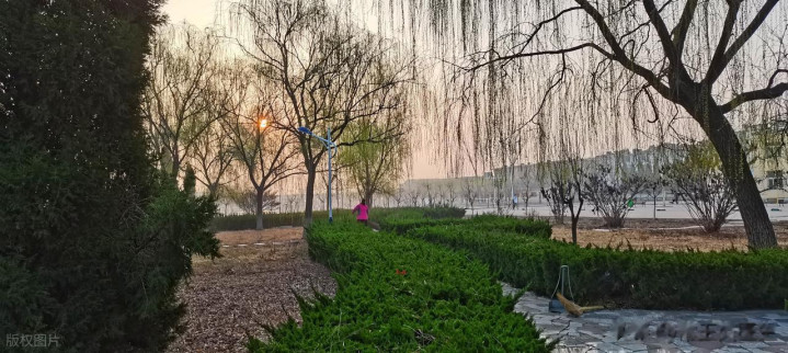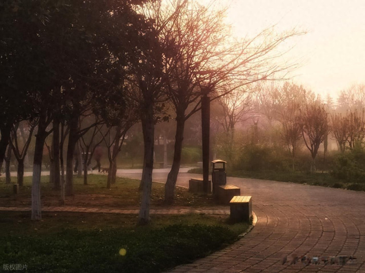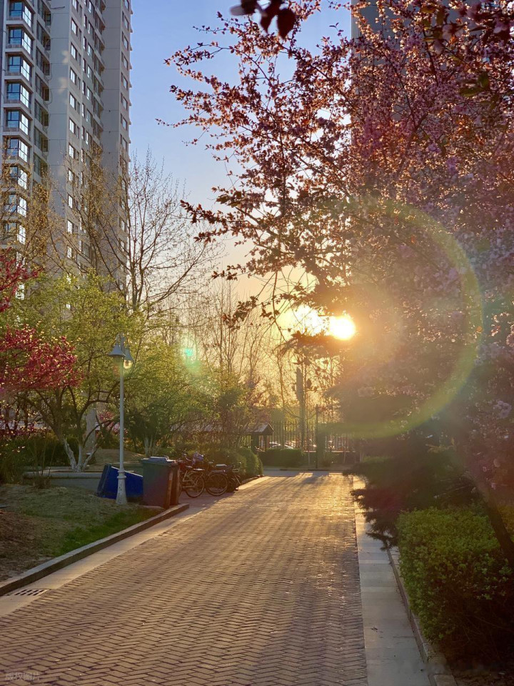 天刚蒙蒙亮,日光还浅,像一层薄纱,心情地铺在街巷与草木间。