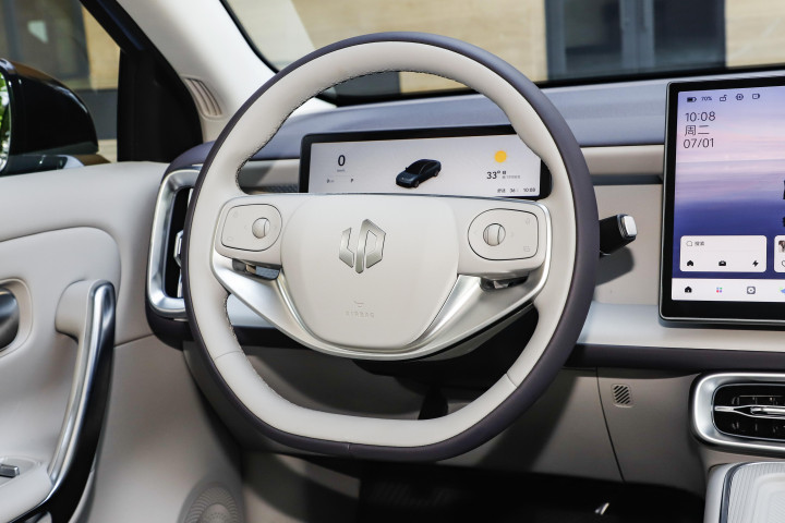 掀开车门你就会发现,零跑B01的内饰极少不花哨,莫得那种过度堆砌的豪华感,举座氛围即是知足、顺遂、耐看,还卓绝耐用,完全贴合家用需求。座舱布局很直快,14.6英寸的2.5K悬浮中控大屏,搭配8.8英寸的液晶姿首,一主一副,搭配得很合理,信息露馅得很直不雅,操作也粗略,家里老东谈主学一遍就能上手。