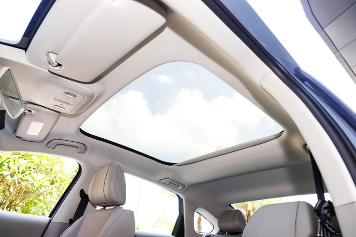 后排还有两个亮点,一是靠背支柱28°角度调度,能找到知足的坐姿;二是地板近乎纯平,满载三个东谈主的时候,中间的乘客毋庸蜷腿,也不会认为挤。车内还有1.8㎡的全景天幕,自带电动遮阳帘,能烦嚣99.9%的紫外线,日间采光很好,视线通透,还不晒东谈主;晚上掀开256色氛围灯,车内氛围感很好,偶尔带家东谈主出去兜风,体验感可以。