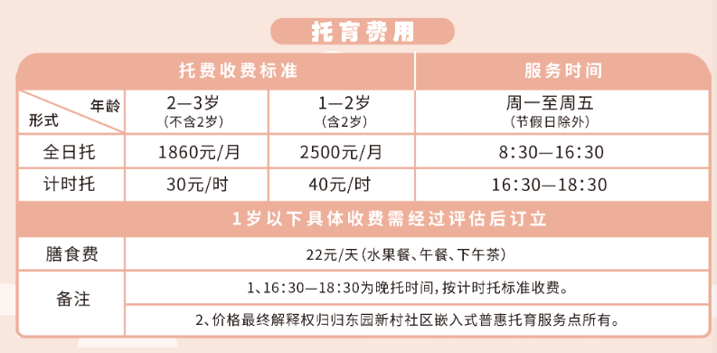 该服务点总体面积约200宽泛米,领有落寞户外手脚场面,为0—3岁婴幼儿提供全日托、半日托、临时托等活泼服务,共设48个普惠托位,全日托用度为1860元/月〔2—3岁(不含2岁)用度〕,奋发于以普惠价钱让优质资源惠及更多庸碌家庭。