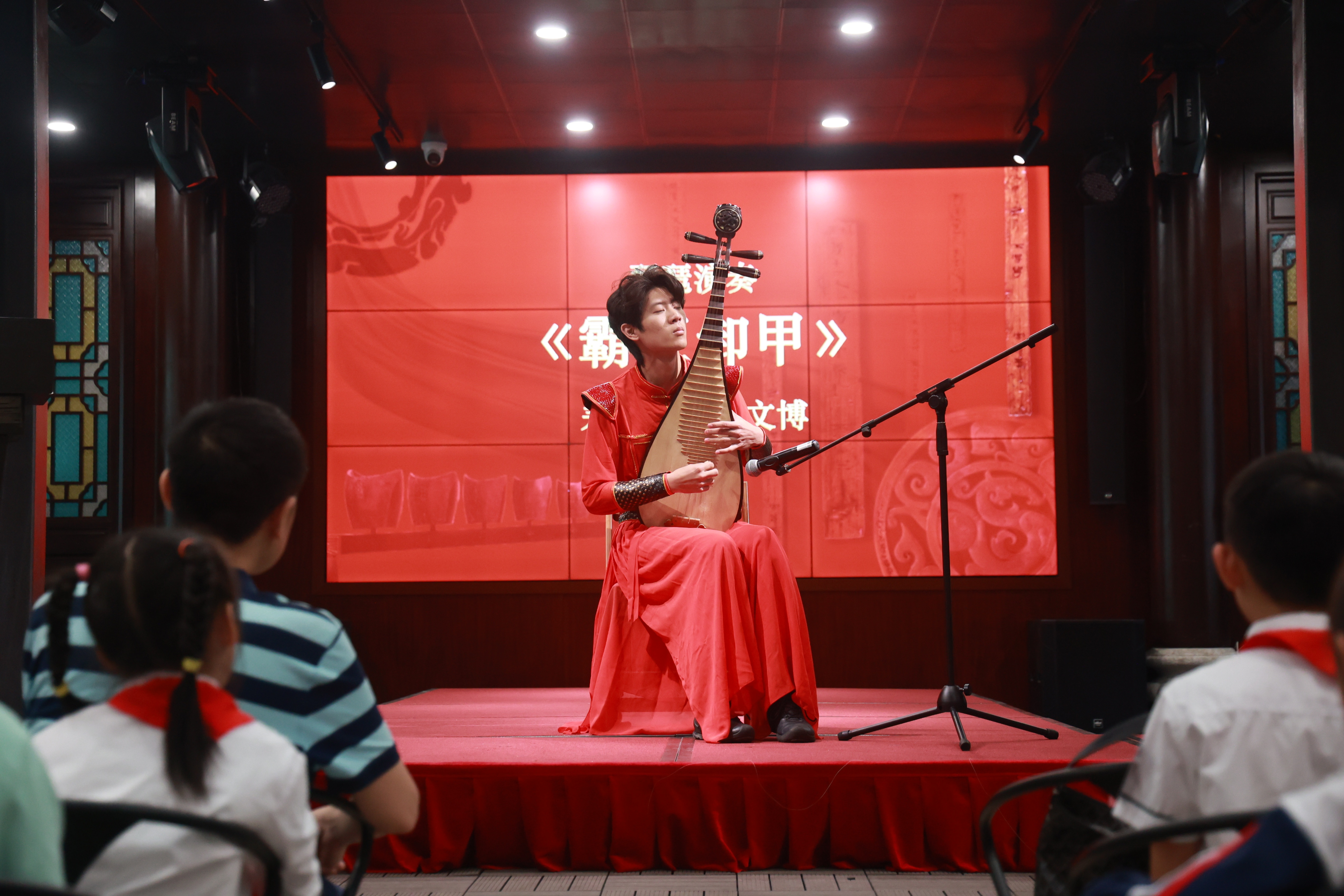 琴韵绕梁,书声入耳。古氏书舍里,古琴曲《神东说念主曲》和琵琶曲《霸王卸甲》渐渐流淌,高古旋律将现场不雅众带入普及千年的历史语境。“百尺阑干横海立,一世襟抱与山开。”越秀学子用童声诵读《历代名家咏越秀诗词选》中的诗词经典,书声琅琅中,千年文脉的耐心底蕴与少年音韵的灵动婉转互相斡旋,勾画出一幅充满古韵的文化图景。